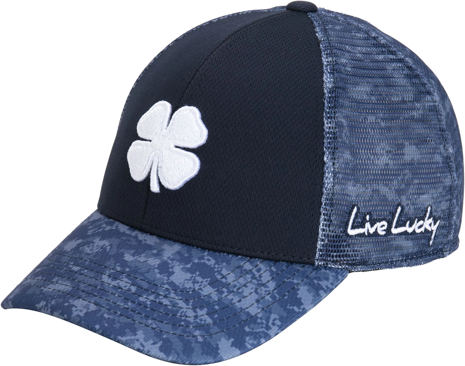 - Black digi camo mesh on back and brim